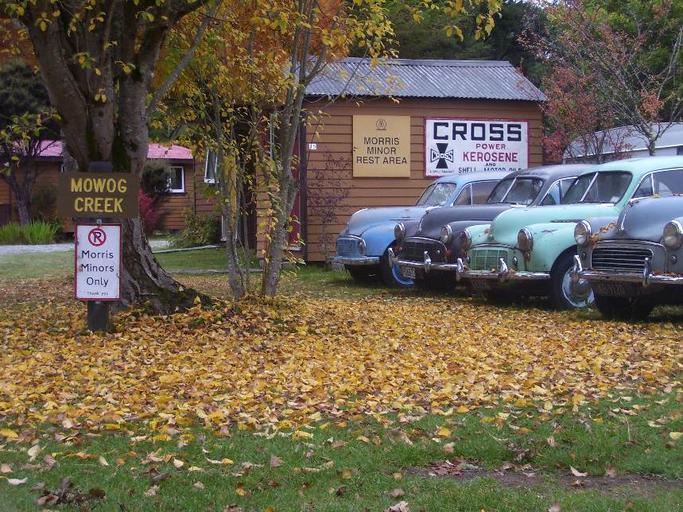 Keywords: Mowog Creek.jpg en the Manapouri Holiday Park Morris Minor Collection Own Motorau 2007 May 9th OTRS pending Larger Format -45 55957193056905 167 61993169784546 Morris Minor Automobiles in New Zealand Southland Region Signs in New Zealand