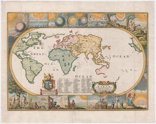 | Keywords: Moxon A Map of the Earth 1681 Cornell CUL PJM 1012 01.jpg Moxan ™s Map with a view of the world as known in 1681 The seven days of creation are illustrated in the panels at the top of the map 1681 cm H x W 32 x 46 Institution Cornell University Library Division of Rare Manuscript Collections https //persuasivemaps library cornell edu/ Persuasive Cartography The PJ Mode Collection place of discovery object history exhibition history credit line See the Collector's Notes by selecting the i information button below http //www sscommons org/openlibrary/secure/ViewImages id 4jEkdDElLjUwRUY6fz5 2BRXpAOHcpel9 2Bew 3D 3D userId gDFB zoomparams fs true the image here accession number 1012 01 place of creation https //persuasivemaps library cornell edu/ Cornell University Persuasive Cartography The PJ Mode Collection <br> For full details see PJ Mode http //persuasivemaps library cornell edu/content/references References PD-old-100-1923 Cornell Persuasive Cartography The PJ Mode Collection Images from Cornell University Library 1681 maps Uploaded with UploadWizard Uploaded with UploadWizard Joseph Moxon Religion maps Creation according to Genesis |