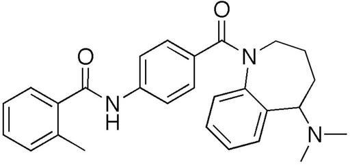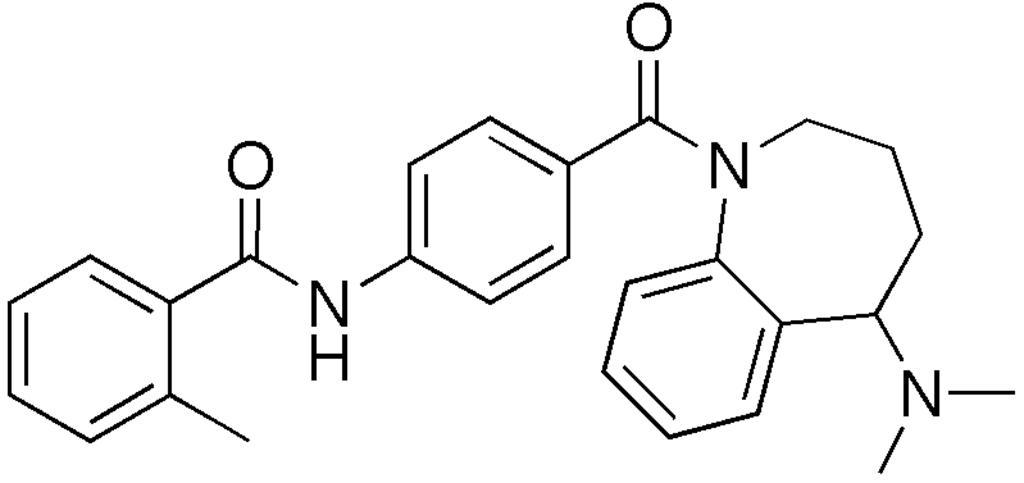 Keywords: Mozavaptan.png Mozavaptan structure svg en chemical structure of Mozavaptan Own Edgar181 19 02 26 July 2008 UTC Benzanilides Benzazepines Toluenes Un-N-substituted anilides Vasopressin receptor antagonists