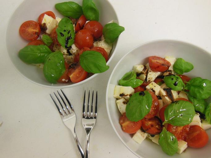 Keywords: mozzarella tomatoes basil food meal vegetables cheese healthy frisch eat