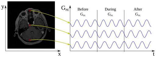 | Keywords: MRI Phase Encoding Principle.svg Uploaded with en wp UW marker 2013 07 03 For use in en Physics_of_magnetic_resonance_imaging Before applying phase encoding gradient all spins precess at the same frequency with the same phase When G_PE is turned on the spins start precessing at different frequencies After G_PE is turned off spins are no longer in phase and the phase is linearly dependent on y position Drawn using Inkscape 0 48 3<br/> 2013-07-03 Dzenanz ;Other information I created it for my PhD thesis which I am currently writing cc-zero Magnetic resonance imaging |