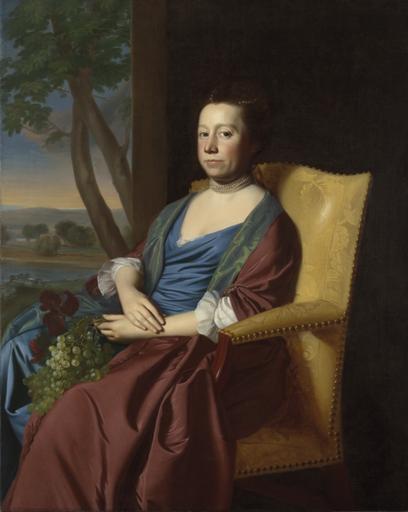 | Keywords: Mrs Isaac Smith Elizabeth Storer by John Singleton Copley 1769.jpeg Artwork Creator John Singleton Copley en Mrs Isaac Smith Elizabeth Storer 1726-1786 oil on canvas by the American artist John Singleton Copley Mrs Isaac Smith was painted along with her husband in the portraits of 1769 among the finest of Copley's portraiture Yale University Art Gallery gift of Maitland F Griggs B A 1896 L H D 1938 Courtesy of Yale University New Haven Conn 1769 Oil on canvas Yale University Art Gallery Yale University Art Gallery http //ecatalogue art yale edu/detail htm objectId 36220 other versions PD-old-100 DEFAULTSORT 1769; Elizabeth Storer Portrait paintings by John Singleton Copley 18th-century portrait paintings in the Yale University Art Gallery Paintings by John Singleton Copley in the Yale University Art Gallery 1769 oil on canvas paintings in the United States Portrait 1769 portrait paintings 18th-century oil portraits of sitting women at three-quarter length Armchairs in portrait paintings American Chippendale furniture Females with hair with pearl jewellery in art Females with pearl chokers in art Paintings of people with grapes Portraits with fruits Three-quarter view painted portraits of women facing left People resting Sitting with one hand holding the other Vitis vinifera |