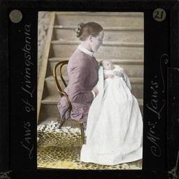 | Keywords: Mrs Margaret Laws, Malawi, 1886 (imp-cswc-GB-237-CSWC47-LS5-1-021).jpg en <br> Mrs Margaret Laws Malawi 1886 Photograph of Mrs Margaret Laws nee Gray wife of Dr Robert Laws Margaret Laws is pictured sitting on a chair holding a young infant likely Dr and Mrs Law's daughter Amelia Nyasa Laws born in 1886 There is a wooden stair case in the background and a leopard skin rug on the floor ; This belongs to a series of Church of Scotland Foreign Missions Committee lantern slides relating to Dr Robert Laws 1851-1934 the Scottish Missionary In 1875 inspired by David Livingstone 1813-1873 Laws travelled to Malawi and was involved in the foundation of the mission station of Livingstonia on the shores of Lake Nyasa During the succeeding 50 years he also established a network of hundreds of schools In 1908 Laws was elected moderator of the General Assembly of the United Free Church of Scotland Photographer Unknown Subject personal name Laws Robert 1851-1934 Filename imp-cswc-GB-237-CSWC47-LS5-1-021 tif Coverage date 1875/1925 Part of collection International Mission Photography Archive ca 1860-ca 1960 Type images Part of subcollection Photographs from the Centre for the Study of World Christianity University of Edinburgh U K ca 1900-ca 1940s Repository name Centre for the Study of World Christianity Archival file impaunpub_Volume7/1524 url Repository address The University of Edinburgh School of Divinity New College Mound Place Edinburgh EH1 2LX United Kingdom Geographic subject country Malawi Format aacr2 1 lantern slide 8 x 8 cm Geographic subject continent Africa Rights Contact the repository for details Part of series Laws of the Pioneer LS5/1 Repository email divinity-CSWC ed ac uk Subject lcsh Keyword Women; Children Date created 1875/1925 Publisher of the digital version University of Southern California Libraries Subject aat genre portraits Format aat lantern slides Legacy record ID impa-m68582 Access conditions http //www ed ac uk/schools-departments/divinity/research/centres/world-christianity/collections-resources File GB 237 CSWC47/LS5/1/21 1875/1925 author http //digitallibrary usc edu/cdm/ref/collection/p15799coll123/id/64645 PD-old-70-1923 Magic lantern images Images from USC Digital Library uploaded by Fæ International Mission Photography Archive ca 1860-ca 1960 |