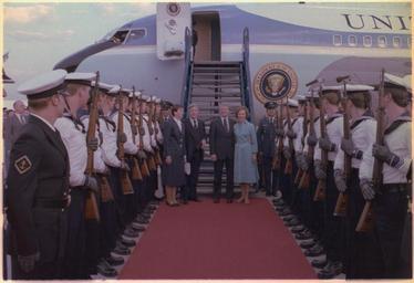 | Keywords: Mrs. Schmidt, Helmut Schmidt, Jimmy Carter and Rosalynn Carter at the Carter departure. - NARA - 180412.tif Scope and content General notes 180412 Local identifier President 1977-1981 Carter White House Staff Photographers 01/20/1977 - 01/20/1981 Jimmy Carter Library NLJC 441 Freedom Parkway Atlanta GA 30307-1498 1978-07-19 Record group Collection JC-WHSP Carter White House Photographs Collection 01/20/1977 - 01/22/1981 Record group ARC 1120 Carter White House Photographs Presidential compiled 01/20/1977 - 01/22/1981 Series ARC 173341 File unit Departure from Bonn 07/19/1978 - 07/19/1978 File unit ARC 180411 Variant control numbers NAIL Control Number NLC-WHSP-C-06657-7 yes Other versions NARA-cooperation PD-USGov Rosalynn and Jimmy Carter 19780719 Helmut Schmidt in 1978 19780719 Loki Schmidt 19780719 Presidents of the United States in foreign countries Jimmy Carter and Helmut Schmidt 19780719 Spouses of national leaders 19780719 Red carpets Bonn |