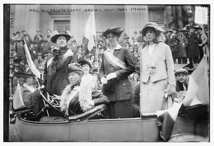 Keywords: Mrs. W.L. Prendergast, Mrs. W.L. Colt, Doris Stevens, Alice Paul 19032v.jpg en Title Mrs W L Prendergast Mrs W L Colt Doris Stevens Alice Paul Bain News Service publisher between ca 1910 and ca 1915 1 negative glass 5 x 7 in or smaller accession number Reproduction Number LC-DIG-ggbain-19032 digital file from original negative Call Number LC-B2- 3463-3 P P institution Library of Congress Prints and Photographs Division Washington D C 20540 USA http //hdl loc gov/loc pnp/pp print Title from unverified data provided by the Bain News Service on the negatives or caption cards Forms part of George Grantham Bain Collection Library of Congress General information about the Bain Collection is available at http //hdl loc gov/loc pnp/pp ggbain LOC-image ggbain 19032 Rights Advisory No known restrictions on publication other versions <gallery> File Dorisstevens jpg crop </gallery> PD-Bain Doris Stevens Uploaded with UploadWizard Alice Paul Suffragettes from the United States Fur chokers Marten clothing Suffragettes wearing fur Fur fashion in 1912 |