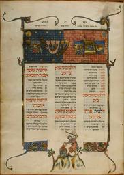 | Keywords: Ms77c-081r.jpg en Kaufmann Mishneh Torah MS A77 vol III f 81r The Binding of Isaac The angel grabs Abraham ™s sword and prevents Abraham from sacrificing his son The angel points at the substitute sacrifice a small ram that stands beneath the altar with his horns caught in a thicket Isaac is portrayed as a small boy who sits on the altar with his hands tied and a pleading expression 1296 http //www tali-virtualmidrash org il/ArtEng aspx art 618 Tali Education Fund author PD-old-100 Uploaded with UploadWizard Kaufmann Mishneh Torah Miniatures of Sacrifice of Isaac |