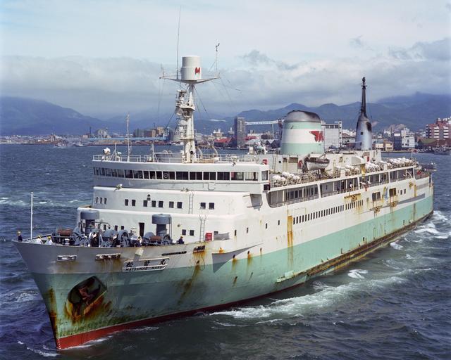 Keywords: MS MATSUMAE MARU 2.jpg en The Japanese National Railways train ferry between Aomori and Hakodate MS MATSUMAE MARU 2 arriving at Aomori port No 2 Pier ja 森第2岸壁に 岸しつつある国鉄 函 絡船 2代目 前丸 Akoihsin Akoihsin 1980 08 03 Train ferries JNR Seikan Ferry Port of Aomori Cc-zero