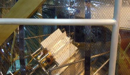 | Keywords: MSL MMRTG loading 2011-7899.jpg en CAPE CANAVERAL Fla -- In the Vertical Integration Facility at Space Launch Complex-41 on Cape Canaveral Air Force Station the multi-mission radioisotope thermoelectric generator MMRTG for NASA's Mars Science Laboratory MSL mission secured to a turning fixture is positioned on the radioisotope power system integration cart RIC The MMRTG will be installed on the Curiosity rover with the aid of the RIC The MMRTG will generate the power needed for the mission from the natural decay of plutonium-238 a non-weapons-grade form of the radioisotope Heat given off by this natural decay will provide constant power through the day and night during all seasons Curiosity MSL's car-sized rover has 10 science instruments designed to search for signs of life including methane and help determine if the gas is from a biological or geological source Waste heat from the MMRTG will be circulated throughout the rover system to keep instruments computers mechanical devices and communications systems within their operating temperature ranges Launch of MSL aboard a United Launch Alliance Atlas V rocket is scheduled for Nov 25 For more information visit http //www nasa gov/msl http //mediaarchive ksc nasa gov/detail cfm mediaid 57126 Department of Energy/Idaho National Laboratory 2011-11-17 Mars Science Laboratory Cape Canaveral Vertical Integration Facility 2011 in Florida PD-USGov |