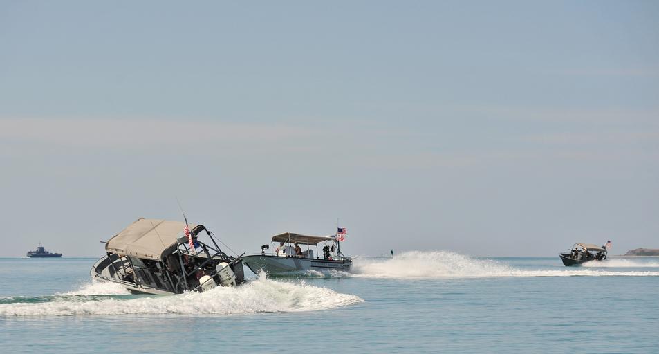 | Keywords: MSST San Diego Level 2 Tactics GTMO 120214-N-RF645-097.jpg en Fast boat teams assigned to he United States Coast Guard Maritime Safety and Security Team MSST San Diego apply their tactics training in Guantanamo Bay The Opposing Forces OPFOR boat middle simulates a breached 500 yard security zone of a high valued asset and the Reaction and Screen vessels go in and determine the OPFOR ™s intent MSST San Diego provides 24-hour security to both the Joint Task Force and Naval Station 2012-02-10 Petty Officer 2nd Class Kilho Park https //www dvidshub net/image/524721 120214-N-RF645-097 2012-02-14 17 33 GUANTANAMO BAY CU PD-USGov-Military-Navy Guantanamo Bay Images from DoD uploaded by Fæ |