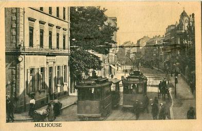 | Keywords: MT 77 - MULHOUSE - sans titre - Croisement de deux tramways.JPG MULHOUSE <br >La carte sans titre représente le croisement de deux tramways électriques dans la Colmarer Strasse actuelle Avenue de Colmar à hauteur de la Graben Strasse actuelle Avenue du Président Kennedy On se trouve approximativement à l'emplacement de l'actuelle Porte Jeune Collection personnelle Scanné par Claude_villetaneuse Années 1920 mais photographie prise probablement avant 1918 car les écritaux sont en allemand pd-old 47 44 58 8 N 7 20 20 E region FR_heading NNW Ancien tramway de Mulhouse 2 trams Historical images of Mulhouse 1920 Streets in Mulhouse Postcards of Mulhouse |