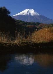 Keywords: fuji mount mountain japan town cloud cap morning lake wave reflection winter blue buildings sky ripple water snow kawaguchi-ko