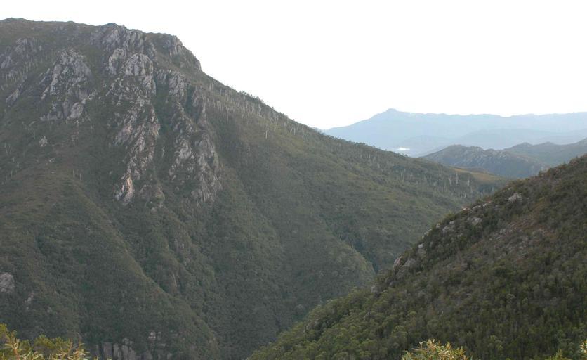 Keywords: Mt Huxley e-mail.jpg King River Gorge Eldon Peak on the skyline at rear Own Pebrall 2008-10-20 No West Coast Range Tasmania Mountains of Tasmania Mount Huxley Tasmania