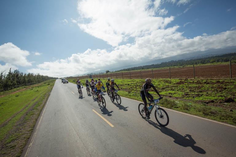 Keywords: outdoor road hill landscape mountain KENYA, Laikipia: In a photograph taken by Make it Kenya 24 November 2015, riders cycle in a group downhill towards Timau town in Laikipia County, 250km north of the Kenyan capital Nairobi, on the fourth and final day of the Mt. Kenya Epik cycling challenge. The 4-day mountain biking adventure challenge race circumnavigates the Mount Kenya region and this inaugural event attracted both Kenyan and international riders from as a far afield as Norway and Japan. The Epik was established to attract sports tourism to the Mt. Kenya region and showcase what it has to offer the outdoor, extreme sports enthusiast while providing riders the opportunity to interact with local communities and witness some of the beautiful scenery and landscapes surrounding Mt. Kenya that otherwise might not seen. The two-man team of Kenyan riders Joseph Echuwa and Samwel Mwangi won the 300km, 4-day race crossing the finish line in 10hrs 31mins and 05secs. MANDATORY CREDIT MAKE IT KENYA PHOTO / STUART PRICE. KENYA, Laikipia: In a photograph taken by Make it Kenya 24 November 2015, riders cycle in a group downhill towards Timau town in Laikipia County, 250km north of the Kenyan capital Nairobi, on the fourth and final day of the Mt. Kenya Epik cycling challenge. The 4-day mountain biking adventure challenge race circumnavigates the Mount Kenya region and this inaugural event attracted both Kenyan and international riders from as a far afield as Norway and Japan. The Epik was established to attract sports tourism to the Mt. Kenya region and showcase what it has to offer the outdoor, extreme sports enthusiast while providing riders the opportunity to interact with local communities and witness some of the beautiful scenery and landscapes surrounding Mt. Kenya that otherwise might not seen. The two-man team of Kenyan riders Joseph Echuwa and Samwel Mwangi won the 300km, 4-day race crossing the finish line in 10hrs 31mins and 05secs. MANDATORY CREDIT MAKE IT KENYA PHOTO / STUART PRICE. |