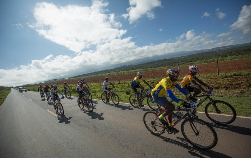 Keywords: vehicle bike outdoor sport KENYA, Laikipia: In a photograph taken by Make it Kenya 24 November 2015, riders cycle in a group downhill towards Timau town in Laikipia County, 250km north of the Kenyan capital Nairobi, on the fourth and final day of the Mt. Kenya Epik cycling challenge. The 4-day mountain biking adventure challenge race circumnavigates the Mount Kenya region and this inaugural event attracted both Kenyan and international riders from as a far afield as Norway and Japan. The Epik was established to attract sports tourism to the Mt. Kenya region and showcase what it has to offer the outdoor, extreme sports enthusiast while providing riders the opportunity to interact with local communities and witness some of the beautiful scenery and landscapes surrounding Mt. Kenya that otherwise might not seen. The two-man team of Kenyan riders Joseph Echuwa and Samwel Mwangi won the 300km, 4-day race crossing the finish line in 10hrs 31mins and 05secs. MANDATORY CREDIT MAKE IT KENYA PHOTO / STUART PRICE. KENYA, Laikipia: In a photograph taken by Make it Kenya 24 November 2015, riders cycle in a group downhill towards Timau town in Laikipia County, 250km north of the Kenyan capital Nairobi, on the fourth and final day of the Mt. Kenya Epik cycling challenge. The 4-day mountain biking adventure challenge race circumnavigates the Mount Kenya region and this inaugural event attracted both Kenyan and international riders from as a far afield as Norway and Japan. The Epik was established to attract sports tourism to the Mt. Kenya region and showcase what it has to offer the outdoor, extreme sports enthusiast while providing riders the opportunity to interact with local communities and witness some of the beautiful scenery and landscapes surrounding Mt. Kenya that otherwise might not seen. The two-man team of Kenyan riders Joseph Echuwa and Samwel Mwangi won the 300km, 4-day race crossing the finish line in 10hrs 31mins and 05secs. MANDATORY CREDIT MAKE IT KENYA PHOTO / STUART PRICE. |