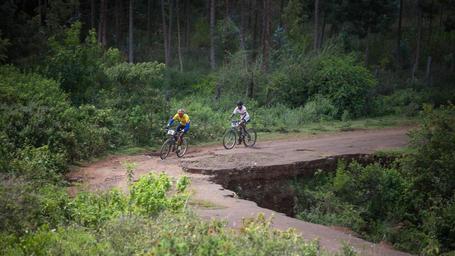 | Keywords: outdoor garden KENYA, Meru: In a photograph taken by Make It Kenya 22 Novemebr 2015, a two-man team of riders cycle through a forested area on day two of the Mt Kenya Epik cycling challenge near the town of Timau in Meru County, 250km north of the Kenyan capital Nairobi. The cycling challenge, taking place between 21-24 November, has over 30 cyclists both local and international professionals covering more than 300km through central Kenya. David Kinjah, Epik founder and training partner to two-time Tour-De France champion Chris Froome, hopes the event creates awareness of conservation projects around the Mt. Kenya region, which address the issues arising as a result of human-wildlife conflict and management of natural resources, particularly in water catchment areas. Kinjah who recently came back from the Cairo-Cape cycling challenge said that the Epik is a good opportunity to further engage the youth of the country and provide them with a platform to be involved in something worthwhile. "Kenyan cycling is still at the grassroots level and that's a good thing," Kinjah said adding that young cyclists come from rural areas and are enthusiastic about a sport that looks to have a bright future in the East AFrican country. MANDATORY CREDIT: MAKE IT KENYA PHOTO / STUART PRICE. KENYA, Meru: In a photograph taken by Make It Kenya 22 Novemebr 2015, a two-man team of riders cycle through a forested area on day two of the Mt Kenya Epik cycling challenge near the town of Timau in Meru County, 250km north of the Kenyan capital Nairobi. The cycling challenge, taking place between 21-24 November, has over 30 cyclists both local and international professionals covering more than 300km through central Kenya. David Kinjah, Epik founder and training partner to two-time Tour-De France champion Chris Froome, hopes the event creates awareness of conservation projects around the Mt. Kenya region, which address the issues arising as a result of human-wildlife conflict and management of natural resources, particularly in water catchment areas. Kinjah who recently came back from the Cairo-Cape cycling challenge said that the Epik is a good opportunity to further engage the youth of the country and provide them with a platform to be involved in something worthwhile. "Kenyan cycling is still at the grassroots level and that's a good thing," Kinjah said adding that young cyclists come from rural areas and are enthusiastic about a sport that looks to have a bright future in the East AFrican country. MANDATORY CREDIT: MAKE IT KENYA PHOTO / STUART PRICE. |