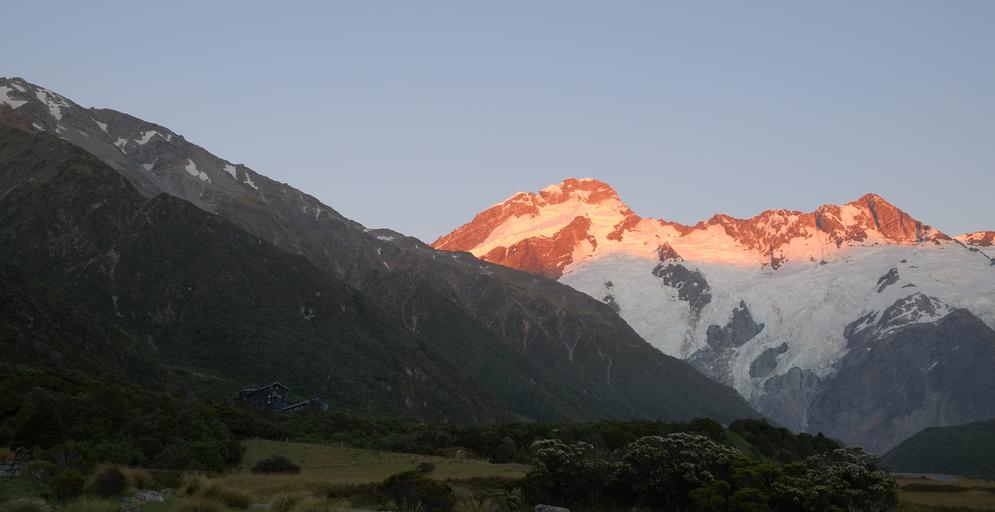 View Original:Mt Sefton, Tuckett Glacier, Huddleston Glacier and The Footstool at sunrise.jpg (4896x2520)