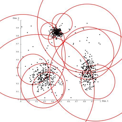 Keywords: Mtree-2d.svg M-tree using ELKI Note that the tree was suboptimally split resulting in a large page overlap and thus reduced performance ELKI Durch eine suboptimale Split-Heuristik hat der Baum aber eine starke à berlappung und dadurch reduzierte Leistung own Chire 2010-06-04 Other fields ELKI + Tree structures