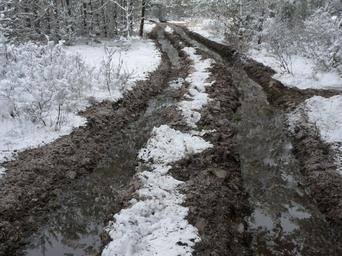 Keywords: muddy dirty winter road mud nature off-road forest countryside snowy