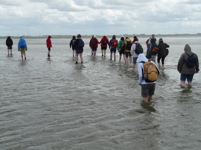 Keywords: mudflat hiking priel hike wadden sea ford personal human schlick mud north sea water risk national park nordfriesland mecklenburg world natural heritage