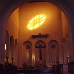 Keywords: Muensterschwarzach Abteikirche Altarraum.jpg abbey church of Münsterschwarzach Germany 2006-10-22 own Immanuel Giel Albert-Boßlet-Church Münsterschwarzach Altars in Lower Franconia