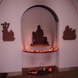Keywords: Muensterschwarzach Abteikirche Pieta.jpg abbey church of Münsterschwarzach Germany 2006-10-22 own Immanuel Giel Albert-Boßlet-Church Münsterschwarzach