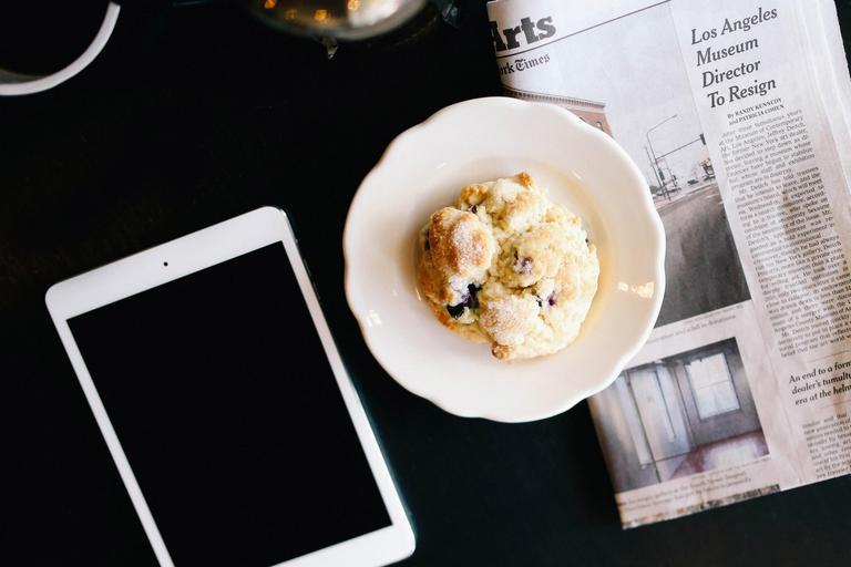Keywords: muffin breakfast newspaper
