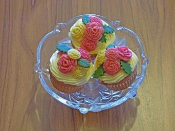 Keywords: muffin cupcakes sweets cakes marzipan ornamentation confectioner's sweet cream rose florets dessert sugar the formation of the color