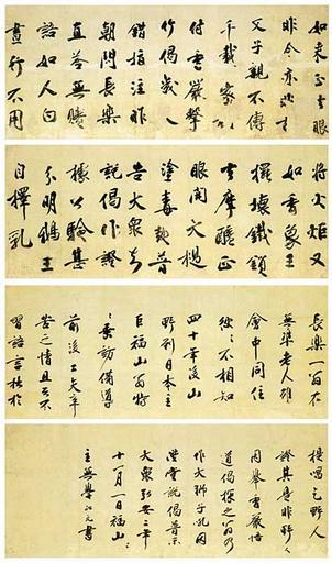 Keywords: Mugaku Soban Ichio.jpg en chōrakuji ichiō niatauru no gego 与長楽寺 翁偈語 Presented to his fellow student Ichiō Ingō 翁院豪 by Mugaku Soban praising his enlightenment Four hanging scrolls Located at Shōkoku-ji Kyoto Japan http //www shokoku-ji or jp/jotenkaku/treasure/index_01soken/mugaku_sogen_01 html Mugaku Soban 1279-12-11 PD-old-100 National Treasures of Japan writings Zen Buddhism |