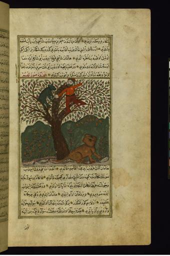Keywords: Muhammad ibn Muhammad Shakir Ruzmah-'i Nathani - Haman Cuts a Branch, with a Bear on it, for the Lion Beneath the Tree - Walters W65957B - Full Page.jpg Muhammad ibn Muhammad Shakir Ruzmah-'i Nathani - The Angels Harut and Marut Hanging as a Punishment for Being Critical of Adam s Fall - Walters W65952B - Full Page jpg Zakariya ibn Muhammad Qazwini - Buraq the Prophet Muhammad's Horse - Walters W65974A - Full Page jpg rtl Walters Art Museum artwork Creator Zakariya al-Qazwini On this folio from Walters manuscript W 659 Haman cuts a branch with a bear on it for the lion beneath the tree islamic 1717 1121 Ottoman ink pigments paper <br/> ink and pigments on European laid paper cm 33 20 accession number W 659 57B 83973 Henry Walters Baltimore date and mode of acquisition unknown Walters Art Museum Henry Walters Acquired by Henry Walters place of origin Turkey Walters Art Museum license 2D Bestiary by Zakariya al-Qazwini Walters MS 659 057B Media contributed by the Walters Art Museum needs category review |