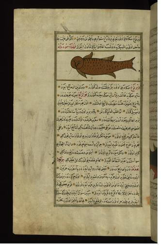 Keywords: Muhammad ibn Muhammad Shakir Ruzmah-'i Nathani - A Fish with the Head of an Owl - Walters W659161A - Full Page.jpg Muhammad ibn Muhammad Shakir Ruzmah-'i Nathani - A Huge Fish - Walters W659160B - Full Page jpg Muhammad ibn Muhammad Shakir Ruzmah-'i Nathani - A Sick Person and Creatures of Saksar Island - Walters W659163A - Full Page jpg rtl Walters Art Museum artwork Creator Zakariya al-Qazwini This folio from Walters manuscript W 659 depicts a fish with the head of an owl islamic 1717 1121 Ottoman ink pigments paper <br/> ink and pigments on European laid paper cm 33 20 accession number W 659 161A 84072 Henry Walters Baltimore date and mode of acquisition unknown Walters Art Museum Henry Walters Acquired by Henry Walters place of origin Turkey Walters Art Museum license 2D Bestiary by Zakariya al-Qazwini Walters MS 659 161A Media contributed by the Walters Art Museum needs category review |