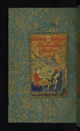 | Keywords: Muhammad Zaman al-Tabrizi - A Landscape Scene with a Young Man and an Old Man - Walters W6516A - Full Page.jpg In this landscape scene from Walters manuscript W 651 a young man holding a sheet of paper containing a verse and an older man are seated next to a tree The older man may be intended to represent the poet Jami The colophon in Arabic gives the name of the calligrapher and date of copying 998 AH/AD 1589-1590 Safavid ink and pigments on orange-tinted paper with bluish-green borders cm 17 5 11 0 accession number W 651 6A 81478 Mahmud Askani 1893-1894 by purchase ownership statement on fol 6b written by Husayn Qavam Daftar and dated 1311 AH/AD 1893-1894 stating that this precious book was bought for his son Mahmud Askani from a woman for 10 ashrafis gold dinars Henry Walters Baltimore date and mode of acquisition unknown Walters Art Museum Henry Walters Acquired by Henry Walters Transliteration place of origin Iran Walters Art Museum license 2D Media contributed by the Walters Art Museum needs category review Tarji-bands poems by Jami Walters MS 651 |