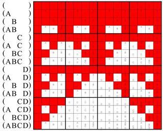 | Keywords: Multigrade operator all or nothing.svg The multigrade operation all or nothing of the arguments in the parentheses to the left of the matrix Red squares stand for binary ones respectively for true 146 of 256 squares are red All or nothing means AND <small>OR</small> NOR 150px <math>~\or~</math> 150px <math>~\Leftrightarrow~</math> 150px Apart from the line with no arguments it's the same as AND <small>XOR</small> NOR 150px <math>~\oplus~</math> 150px <math>~\Leftrightarrow~</math> 150px own 2010 Mate2code Related files User Boolean Algebra/Multigrade operator examples <br clear all> Truth tables Binary square matrices in logic |