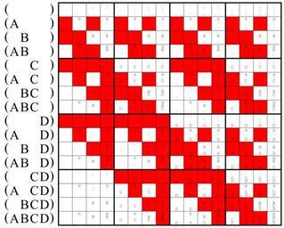 | Keywords: Multigrade operator minimal negation.svg http //mywikibiz com/Minimal_negation_operator Minimal negation operations of the arguments in the parentheses to the left of the matrix Red squares stand for binary ones respectively for true 108 of 256 squares are red own 2010 Lipedia Related files User Boolean Algebra/Multigrade operator examples <br clear all> Truth tables Binary square matrices in logic Exclusive or and related functions | ||||