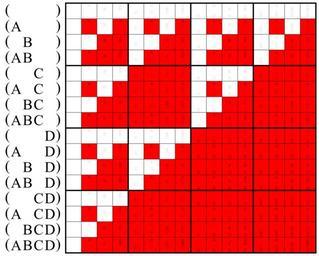 | Keywords: Multigrade operator OR.svg Disjunctions of the arguments in the parentheses to the left of the matrix Red squares stand for binary ones respectively for true 175 of 256 squares are red own 2010 Mate2code Related files User Boolean Algebra/Multigrade operator examples <br clear all> Truth tables Sierpinski triangles in binary 16x16 matrices Binary square matrices in logic |