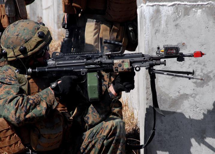 | Keywords: Multiple Integrated Laser Engagement System DVIDS156639.jpg en A Marine from L/3/5/ 31st Marine Expeditionary Unit uses the Multiple Integrated Laser Engagement System during a simulated force on force military operations on urban terrain Lima Company home ported in Camp Pendleton Calif is participating in Exercise Key Resolve/Foal Eagle 2009 which is an annual joint exercise involving forces from both the United States and the Republic of Korea 2009-03-10 Petty Officer 1st Class Bobbie Attaway https //www dvidshub net/image/156639 090310-N-+++++-001 2009-03-11 09 40 RODRIGUEZ RANGE KP PD-USGov-Military-Navy Marine Corps Base Camp Pendleton 31st Marine Expeditionary Unit Images from DoD uploaded by Fæ M249 light machine guns Blank-firing adaptor Multiple Integrated Laser Engagement System |