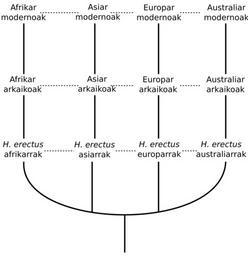 Keywords: Multiregionaltheory eu.svg eu Eskualde anitzen teoria 2011-12-11 own Assar Based on http //commons wikimedia org/wiki/File Multiregionaltheory svg cc-zero Phylogenetic trees of humans Uploaded with UploadWizard