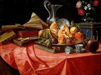 | Keywords: Munari, Cristoforo - Libri, porcellane cinesi, vassoio di frutta, bauletto, vasetto di fiori e teiera su tavolo coperto da tovaglia rossa.jpg Artwork Creator Cristoforo Munari Libri porcellane cinesi vassoio di frutta bauletto vasetto di fiori e teiera su tavolo coperto da tovaglia rossa Oil on canvas 88 0x115 0 cm collezione d ™arte della Fondazione Manodori Reggio Emilia Italy http //www fondazionemanodori it/ author 67 page 66 http //www fondazionemanodori it/media/artGallery/big/munari_4 jpg Other versions PD-old-100 Cristoforo Munari Libri porcellane cinesi vassoio di frutta bauletto vasetto di fiori e teiera su tavolo coperto da tovaglia rossa 18th-century still life paintings in Italy 1700s paintings in Italy 1700s still life paintings oil still life paintings Roses in art Baroque paintings from Italy Still life paintings of books Vases in still-life paintings Still life paintings of melons Still-life paintings of glassware 17th-century oil on canvas paintings in Italy Paintings of peaches Paintings of pears Plums in paintings Jugs in art Still life paintings of tableware Uploads by Mattes from external sources Porcelain tableware in art |