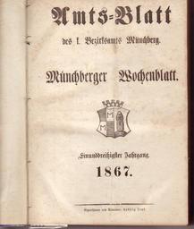 | Keywords: Münchberger Amts- und Wochenblatt.jpg Deckblatt des ehemaligen Münchberger Amts-und Wochenblattes I'm the owner 1867 Ludwig Zapf PD-old original upload log wikitable date/time username resolution size edit summary ---- 10 57 4 May 2008 User Adrian Roßner <a href http //upload wikimedia org/wikipedia/commons/8/86/Amtsblatt jpg ><img alt Thumbnail for version as of 10 57 4 May 2008 src http //upload wikimedia org/wikipedia/commons/thumb/8/86/Amtsblatt jpg/101px-Amtsblatt jpg width 101 height 119 border 0 /></a></td><td>1 237×1 463 424 KB <nowiki> Andere Versionen </nowiki> 1867 |