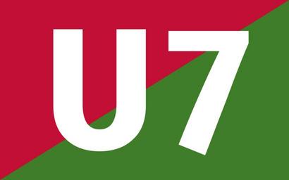| Keywords: München U7 MO.svg Liniennummer der Linie U7 der U-Bahn München alternative Version die auf offiziellen Plänen für Messestadt-Ost verwendet wird line number sign of line U7 of Munich U-Bahn alternative version used for Messestadt-Ost on official maps 2006-09-24 created with create_mvg pl Claus Färber 3247 24px line numbers of Munich U-Bahn |