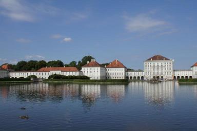 Keywords: munich lake mirroring bavaria castle nymphenburg castle water blue sky park nymphenburg castle park germany romantic property