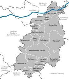 | Keywords: Municipalities in PAF.svg DeLocMaps Landkreis Pfaffenhofen an der Ilm District of Pfaffenhofen/Ilm Pfaffenhofen district L'arrondissement de Pfaffenhofen an der Ilm Arrondissement de Pfaffenhofen an der Ilm Bayern Bavière Bavaria Adobe Illustrator <br/> own based on <br/> File Municipalities_in_Bavaria svg by TUBS 2010-05-07 Hagar66 based on work of TUBS Hagar66/licensesection Attribution TUBS/Credits Locator maps of municipalities in Landkreis Pfaffenhofen an der Ilm | ||||