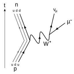 | Keywords: Muon Capture Feynman diagram.svg Feynman diagram for the muon capture The up quark in the proton capturing an electron decays into an down quark to make a neutron emitting an muon neutrino fr Le diagramme de Feynman pour la capture muonique Le quark up du proton après la capture d'un muon se désintègre en quark down créant ainsi un neutron accompagné d'une émission de neutrino muonique 2015-03-04 own Created with Inkscape Pamputt PD-ineligible other versions cc-zero Uploaded with UploadWizard Feynman diagrams Beta decay |