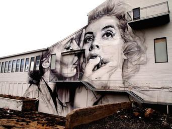 Keywords: mural industrial building graffiti painting lipstick reykjavik
