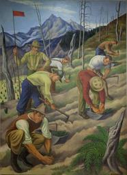 | Keywords: Mural- "Replanting the Wasteland," by Ernest Fiene at the Department of Interior, Washington, D.C LCCN2013634332.tif 1 photograph digital tiff file color Notes Gift; Carol M Highsmith; 2009; DLC/PP-2009 083 ; Photographed as part of an assignment for the General Services Administration ; Title date and keywords from information provided by the photographer ; Forms part of Photographs in the Carol M Highsmith Archive ; Date 1938; dimensions 107 x 77 ; medium oil ; Credit line Photographs in the Carol M Highsmith Archive Library of Congress Prints and Photographs Division 2011 Creator Carol M Highsmith Library of Congress Catalog http //lccn loc gov/2013634332 Image download https //cdn loc gov/master/pnp/highsm/24700/24725a tif Original url http //hdl loc gov/loc pnp/highsm 24725 No known restrictions on publication LOC-image highsm 24725 PD-Highsmith Images uploaded by Fæ Photographs by Carol M Highsmith Photographs by Carol M Highsmith needing review |