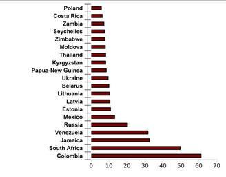 | Keywords: Murder per capita by country.svg en Murders per capita 1998 - 2000 by country Source http //www nationmaster com/red/graph/cri_mur_percap-crime-murders-per-capita int -1 Murders per capita 1998 - 2000 by country sur nationmaster com Own Urban 2009-04-20 File Taux de meurtres svg Homicide rates Crime statistics |