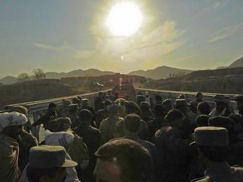 | Keywords: Murghab River Bridge.jpg en Village members surge onto the new bridge across the Murghab River WesternAfghanistan Thisbridge built primarily by Afghan National Security Forces -with the assistance of ISAF -replaced the unstable old one which had visible cracks Without a reliable bridge schools and hospitals on one side of the river could not serve people on the other side and would inhibit freedom of movement along the main road in the western part of the country http //nato usmission gov/Issues/Afghanistan/From 20Guardian 20to 20Friend-The 20Many 20Faces 20and 20Roles 20of 20NATO 20in 20Afghanistan pdf 2008-03 unknown PD-USGov Bridges in Afghanistan People of Afghanistan Bridge construction in Afghanistan Iron truss beam bridges |