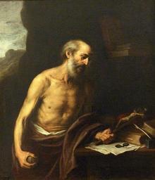 | Keywords: Murillo-san jeronimo-sevilla-mba.JPG San Jerónimo de Estridón uno de los Padres de la Iglesia aparece en el interior de una gruta con el torso desnudo y profundamente concentrado en la oración y la penitencia al tiempo que sostiene un crucifijo con su mano izquierda circa 1665 1675 oil canvas Size cm 105 123 Institution Museo de Bellas Artes Seville http //ceres mcu es/pages/Main accession number CE0804P http //3 bp blogspot com/-DNYsL_LnDrI/Tj_OGyQ12zI/AAAAAAAAN10/2JKoAEHt5WU/s640/Sala+VII-02-San+Jer 25C3 25B3nimo+penitente +Murillo 252C+1 665 jpg PD-old-100 Paintings of Saint Jerome in Spain 17th-century paintings of Saint Jerome Paintings of Saint Jerome by Bartolomé Esteban Murillo Paintings by Bartolomé Esteban Murillo in the Fine Arts Museum of Seville 17th-century paintings in the Fine Arts Museum of Seville |