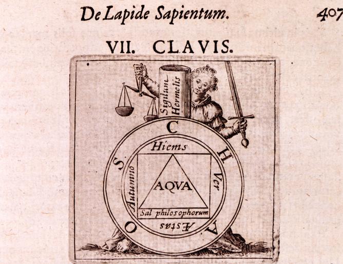 | Keywords: Musaeum Hermeticum 1678 VII Clavis AQ35 Key 7.tif Matthaeus Merian 1593 “1650 From Tripus aureus hoc est Tres tractatus chymici selectissimi nempe I Basilii Valentini benedictini ordinis monachi Germani practica una cum 12 clavibus et appendice ex germanico; II Thomae Nortoni angli philosophi crede mihi seu ordinale ante annos 140 ab authore seriptum nunc ex anglicano manuscripto in latinum translatum phrasi eujusque authoris ut et sententia retenta; III Cremeri cuiusdam abbatis westmonasteriensis angli testamentum hactenus nondum publicatum nunc in diversarum nationum gratiam editi et figuris cupro affabre incisis ornati operâ et studio Michaelis Maieri phil et med d com p c Francofurti apud Hermannum à Sande MDCLXXVII as published in the collection Musaeum hermeticum reformatum et amplificatum Francofurti Apud Hermannum à Sande 1678 In Latin The part in question 'I Basilii Valentini benedictini ordinis monachi Germani practica una cum 12 clavibus et appendice ex germanico;' or 'Basil Valentine a German monk of the Benedictine order one study with the twelve keys and the appendix translated from the German ' A woman holds scales in her right hand and a sword in her left and stands behind a large flask the neck of which reads Sigilum Hermelis the Seal of Hermes The vessel is labelled CHAOS Within it is a circle labelled with the four seasons Hiems Ver Æstas Autumno around a square marked Sal philosophorum Salt of the Philosophers inside of which a triangle is inscribed with AQVA water http //othmerlib chemheritage org/record b1035996~S6 Catalog Information From the copy in the Roy G Neville Historical Chemical Library http //www chemheritage org/ Chemical Heritage Foundation Downloaded with permission from the Chemical Heritage Foundation as part of the Wikipedian in Residence initiative Chemical Heritage Foundation http //www chemheritage org/ Chemical Heritage Foundation 1678 PD-old-100 PD-old-100 cc-by-3 0 Chemical Heritage Foundation Category Alchemy Musaeum Hermeticum Archives Images from the Chemical Heritage Foundation Twelve Keys of Basil Valentine PD-old-100 |