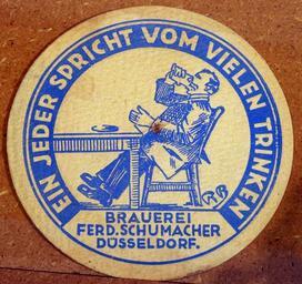 Keywords: Musée Européen de la Bière, Beer coaster pic-051.JPG Brauerei Ferd Schumacher Dusseldorf Photographed through glass own 2012-08-16 16 15 19 AlfvanBeem CC-zero Trademarked Musée Européen de la Bière Nostalgia by Alf van Beem Beermats
