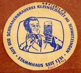 Keywords: Musée Européen de la Bière, Beer coaster pic-055.JPG VSchwanenbrauerei Kleinschmitt AG Photographed through glass own 2012-08-16 16 16 31 AlfvanBeem CC-zero Trademarked Musée Européen de la Bière Nostalgia by Alf van Beem Beermats